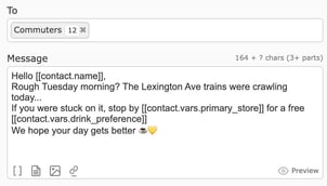 Telerivet includes a flexible variable system that lets you personalize messages with a single click. You do not need technical knowledge. If you can select a field, you can personalize your messages.